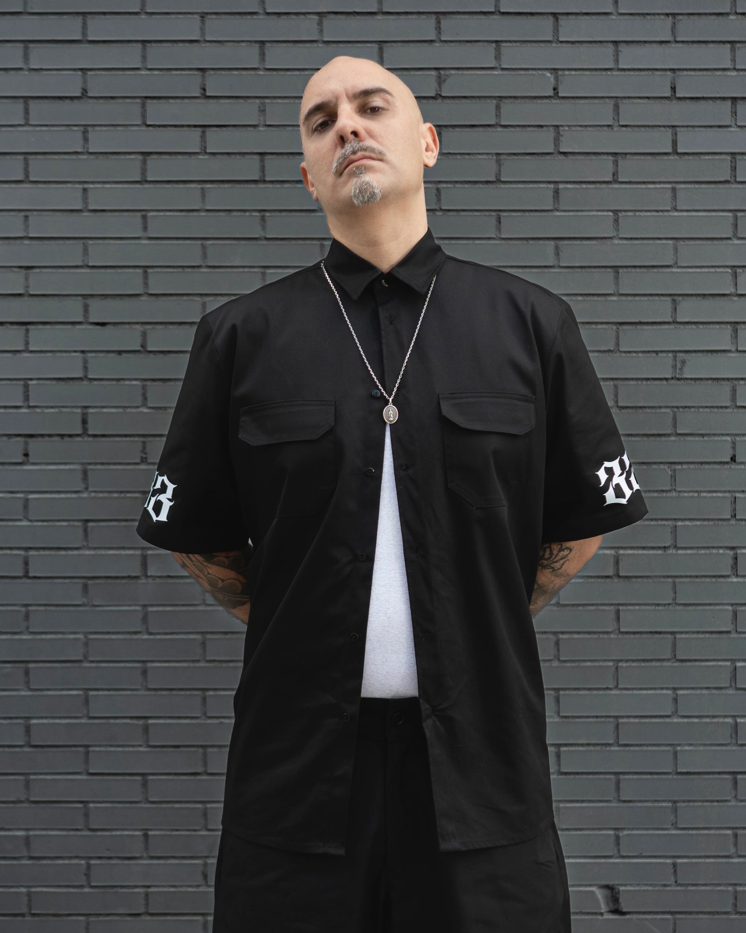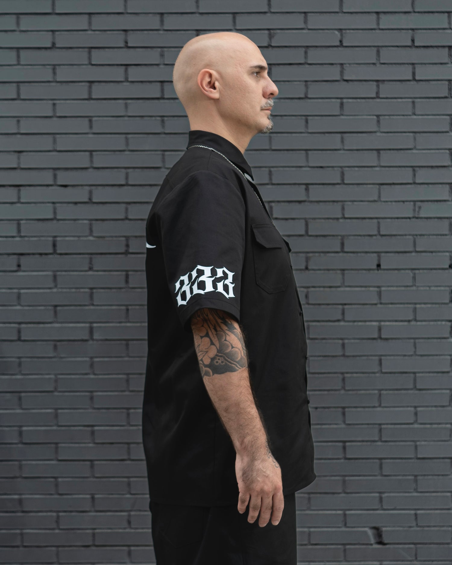 Nuestra camisa work de corte recto y hombros ligeramente caídos con botones está confeccionada por nosotros con sarga de polialgodón de origen consciente que es duradera y respetuosa con el medioambiente.